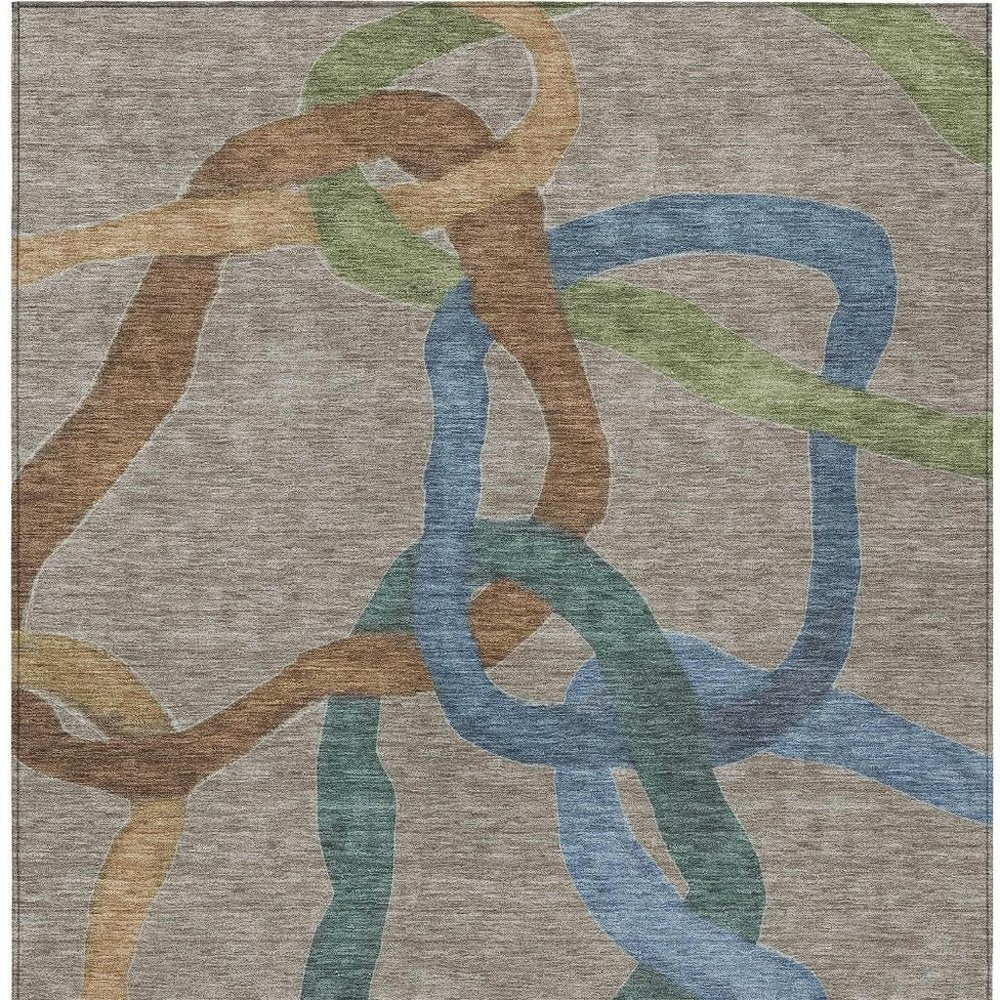 9' X 12' Taupe Blue And Copper Abstract Washable Indoor Outdoor Area Rug
