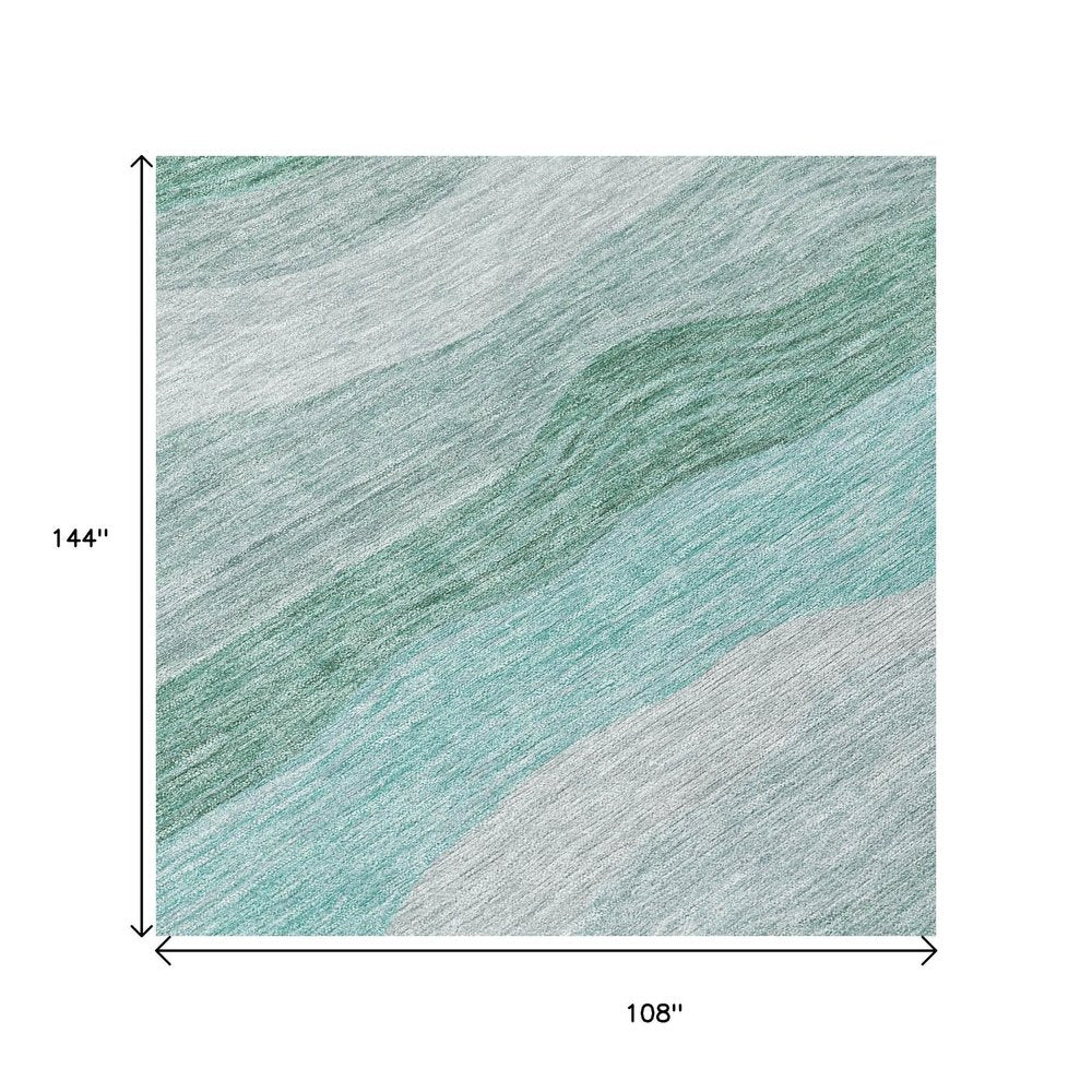 9' X 12' Teal Blue Silver And Gray Striped Washable Indoor Outdoor Area Rug