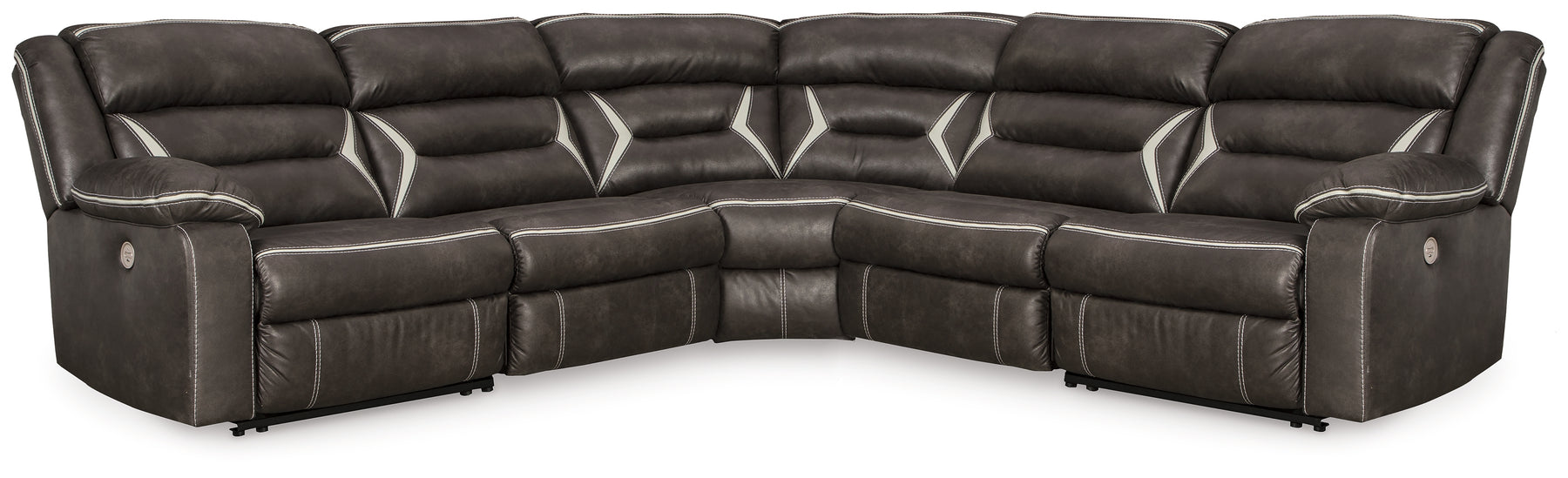 You could play it safe. Or you could choose to stand out in the crowd with this brilliantly styled sectional with power. Ultra cool, ultra contemporary and ultra comfortable, this fashion-forward sectional sports a fabulous faux leather enhanced with contrasting stitching that’s right on point. Rest assured, sumptuous pillow top armrests and sleek channel cushioning feel every bit as good as they look. Enlightened elements include a power control with USB plug-in and blue LED lighting (by the cup holders) to create a home theater experience worthy of A-listers.