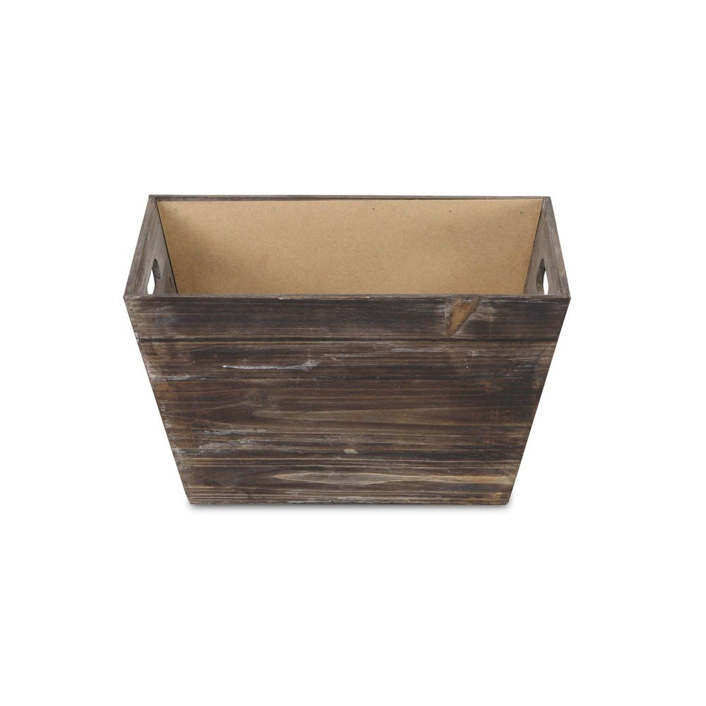 With this Rustic Wooden Storage Box with Chalkboard Tile you can life the super organized life you have always dreamed of. This box is made from solid wood and has a light gray natural stain on it which allows the wooden grains and details to show through. The shape of this box is tapered towards the bottom which creates a deep vessel to store and organize anything in. There are two handles cut on each side and a chalkboard tile at the front that allows you to label whatever you have inside this box. Use it in your kitchen, bedroom, your loving room, or in your entry way. 9" H x 15.25" W x 10.25" D