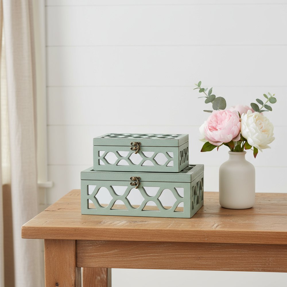 More from Set of Two Blue Mirrored Glass And Wood Box With Lid Collection
