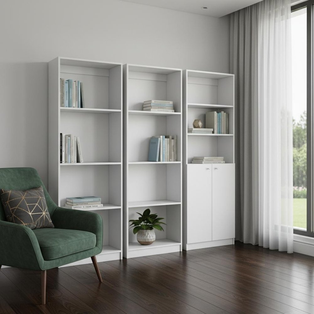 More from Set of Three White Wood Eleven Tier Modular Bookcase with Two Doors Collection