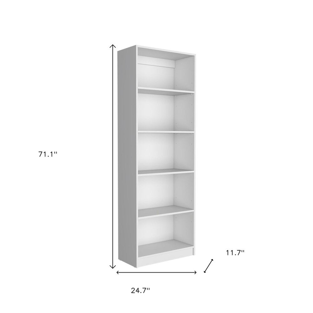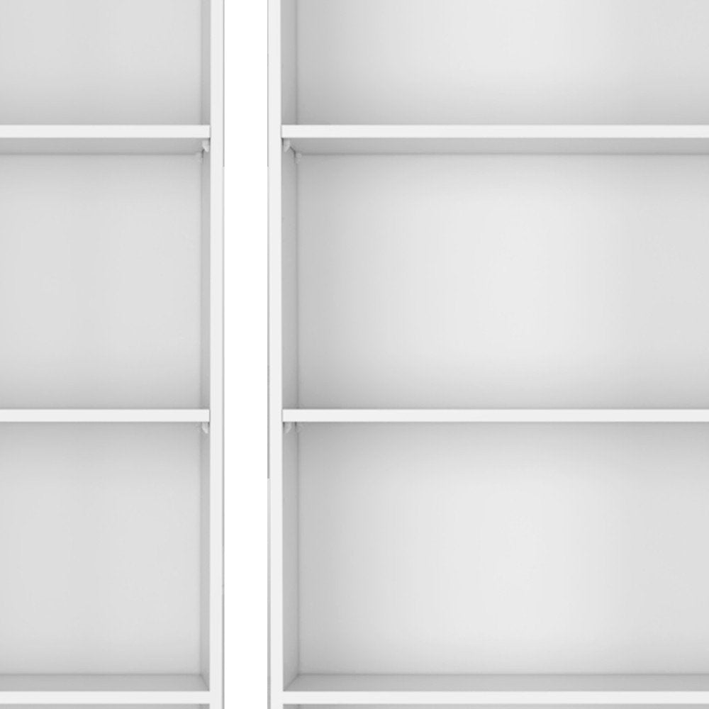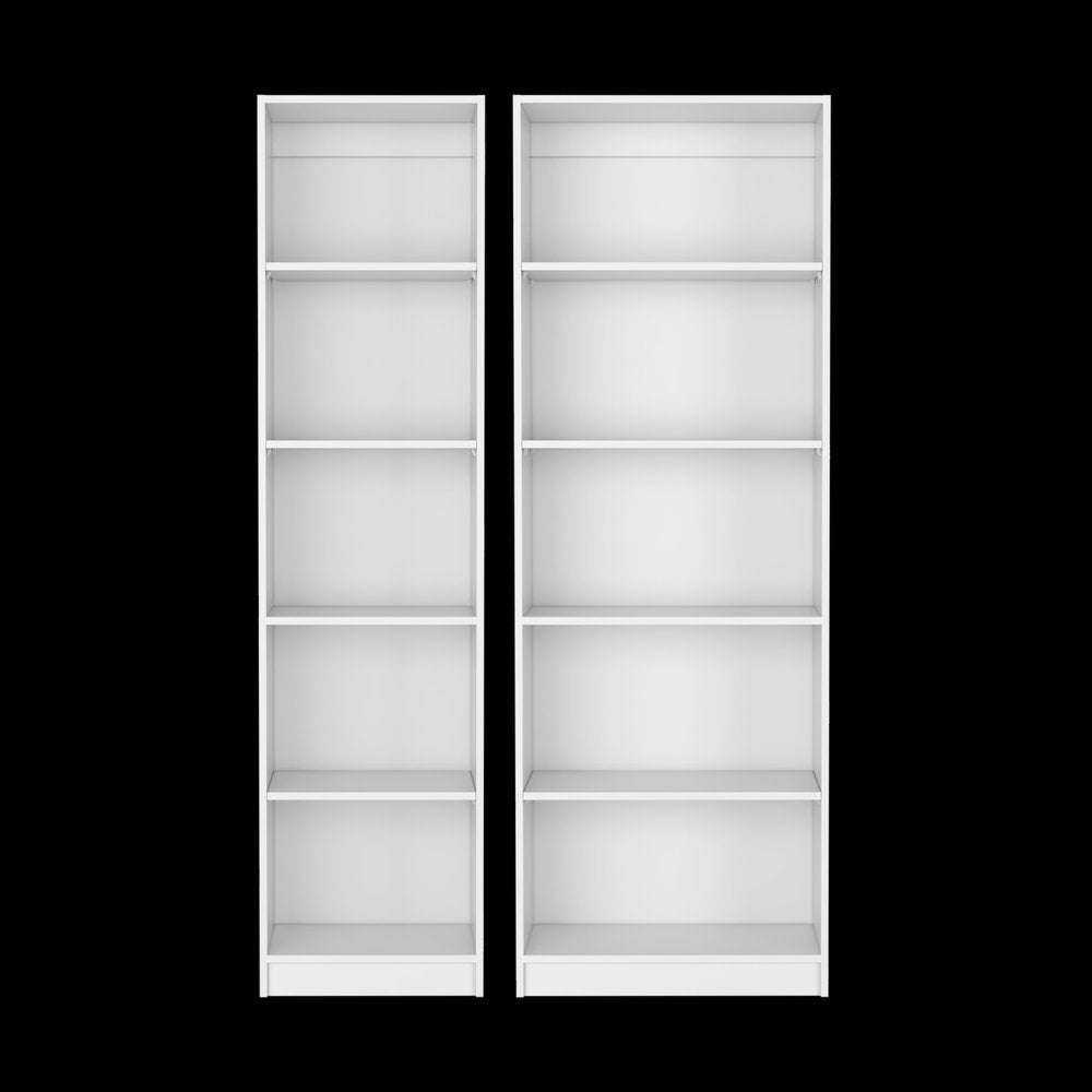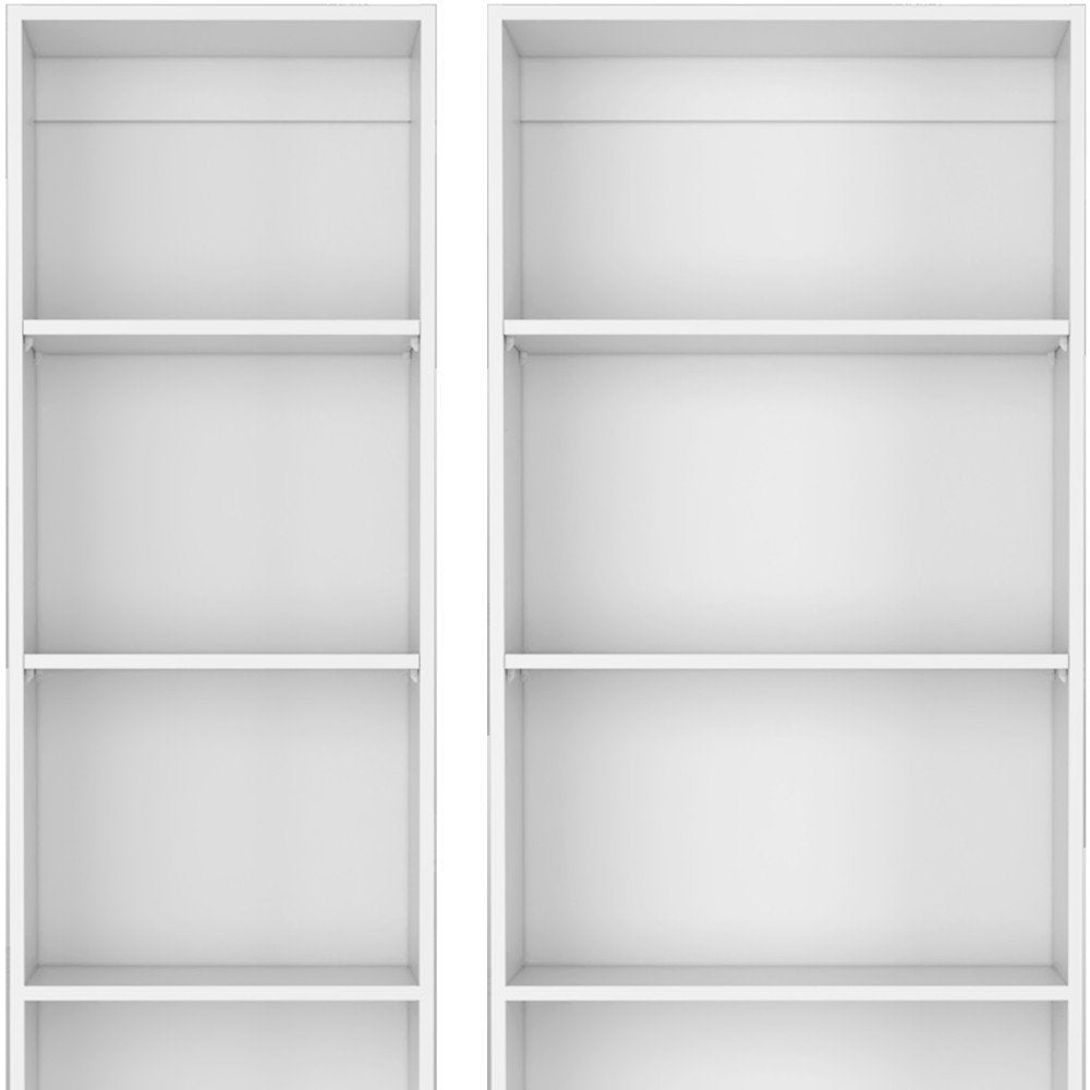 This set of two white wood five tier modular bookcase is a fresh and updated way to help you keep your space neat and organized. Features 5 shelf tiers for storing books, displaying photographs, plants, or other decorations. Great to use independently or pair with additional units to create a different look and add even more storage. Increase your room's capacity for storage and display with this great shelving unit. 71.10-inch h x 24.70-inch w x 11.70-inch d.