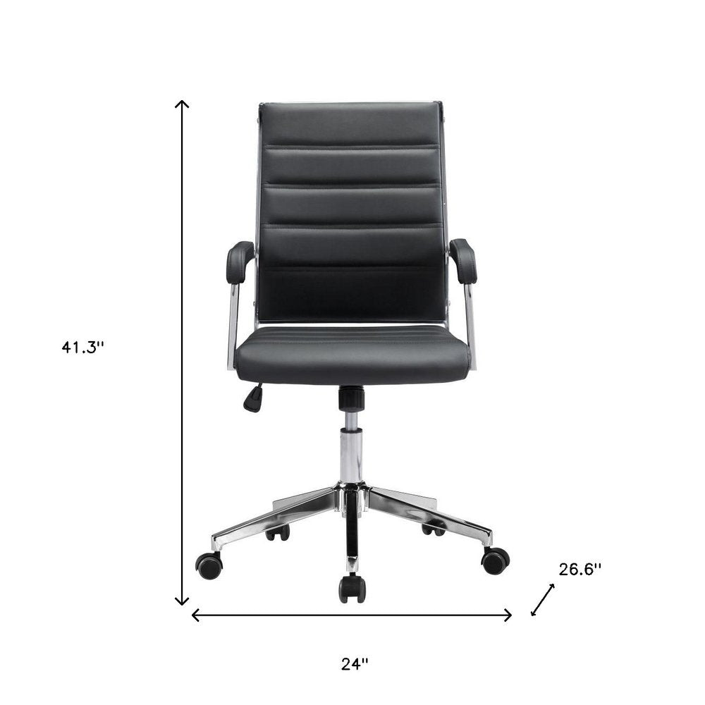 Silver and Black Adjustable Swivel Faux Leather Rolling Conference Office Chair