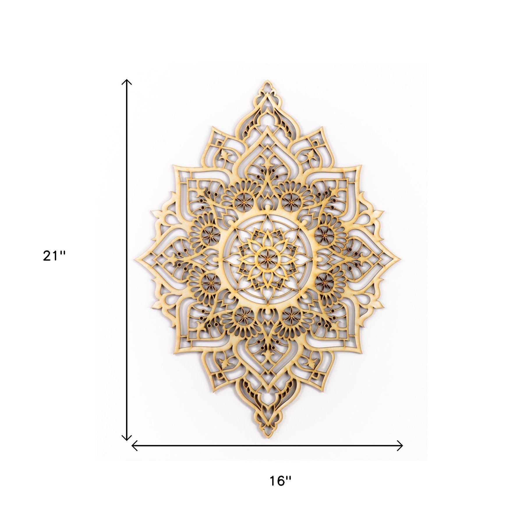 Unique and decorative, this turquoise and gold color solid wood geometric shapes wall decor will add a beautiful decorative accent to your decor. This hand painted laser cut wood morning star mandala will bring cool bohemian vibes to your space and be a unique and fun way to decorate your walls. Hang on your wall to add some up to date fashion and decoration. Utilize this opportunity to create a focal point in the room with this fabulous geometric wall decor option. 21" H x 16" W x 0.25" D