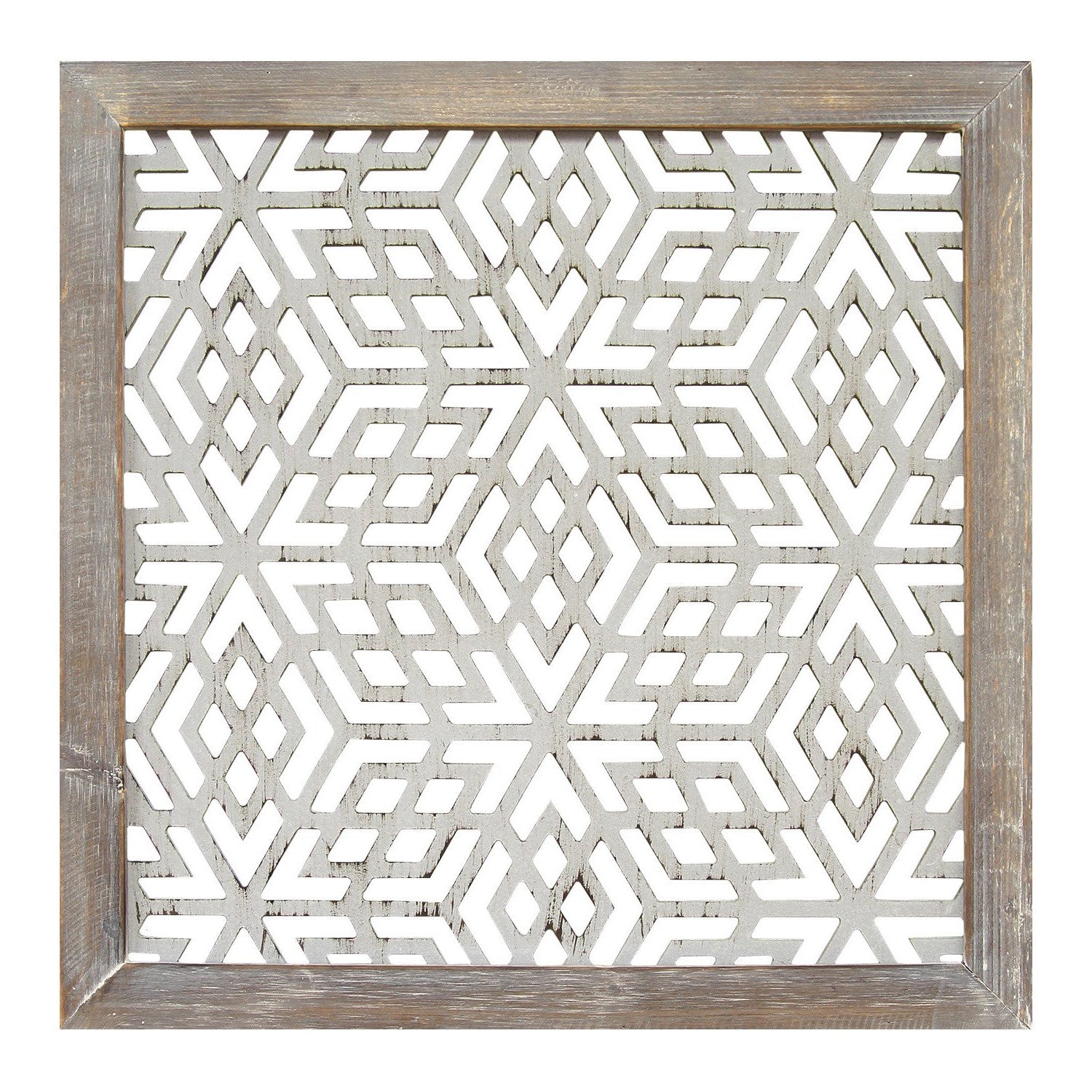 Add a spectacular scene to your home decor with this wood framed laser-cut wall decor. Our wall art is hand-painted to create a focal point in any room setting. Featuring a unique laser-cut metal piece with a touch of white and framed by a square wood edges in distressed gray finish to provide excellent visual vibes in a classic room setting. Traditional style - 50% Wood, 50% MDF Attached D-ring hanging method Vertical hanging orientation Wipe clean with damp cloth. It measures 16" X 1" X 16".